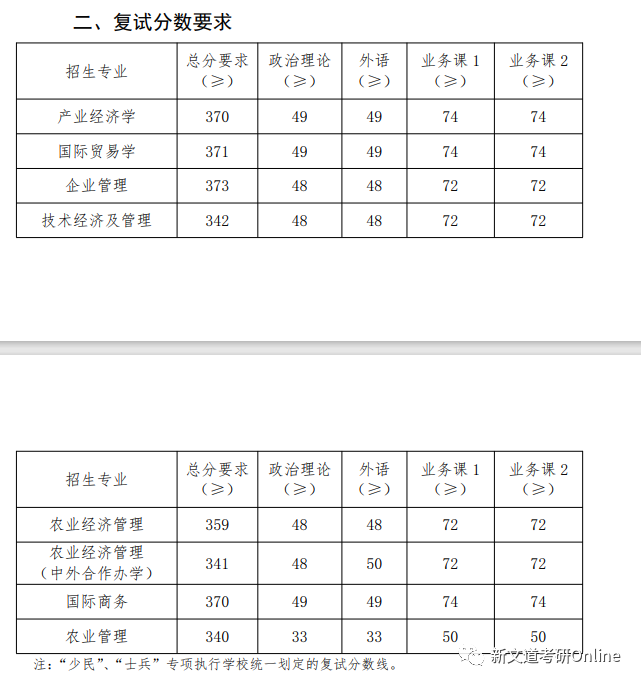 招生專業及復試分數線