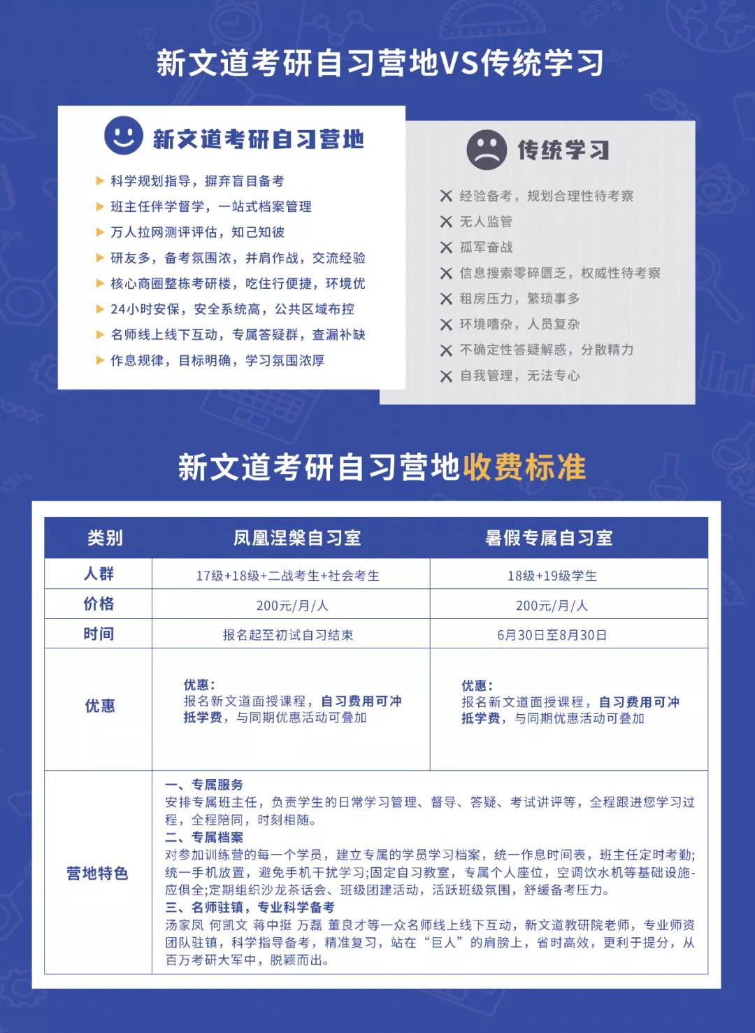 湖北新文道「考研自習營地」開始營業啦~,還在擔心沒有良好的環境復習考研嗎?這里有個不錯的自習室可以考慮下!專屬多功能分區自習,固定考研座位,更有專屬復習規劃,一對一科學指導,特大優惠一月僅需200元。