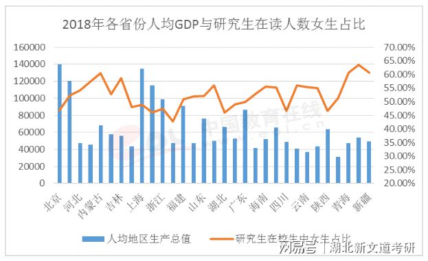 于是,學姐找到了這份數據:2018年各省份人均GDP與研究生在讀人數女生占比,不難看出,地區經濟發展水平和女生是否讀研有一定的聯系。
