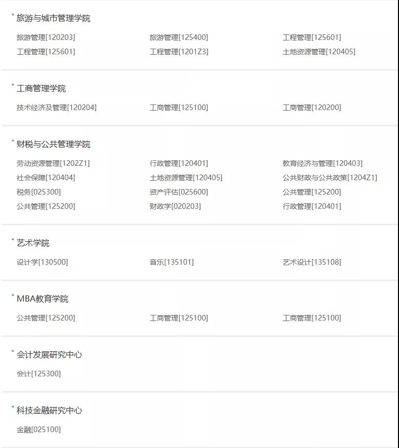 學?,F有經濟學、管理學、法學、工學、文學、理學、藝術等學科門類;擁有應用經濟學、理論經濟學、管理科學與工程、工商管理、統計學共5個博士后流動站;應用經濟學、理論經濟學、管理科學與工程、工商管理、統計學、法學、馬克思主義理論共7個一級博士學位授權點,28個二級博士學位授權點,14個一級碩士學位授權點,70個二級碩士學位授權點,17個專業碩士學位授權點,52個本科專業;1998年獲批江西省首家MBA辦學權,2009年獲批江西省首家EMBA辦學權,2017年順利通過中國高質量MBA教育認證;擁有1個國家重點培育學科(產業經濟學)、6個國家級特色專業(金融學、市場營銷、會計學、信息管理與信息系統、財政學、法學),有3個江西省“十二五”高水平學科、7個江西省“十二五”重點學科、3個江西省“十二五”示范性碩士點。在全國第四輪學科評估中,學校應用經濟學、統計學獲評A-等級(全國前10%),工商管理獲評B+等級(全國前20%),理論經濟學、管理科學與工程、法學獲評B等級(全國前30%),公共管理獲評B-等級(全國前40%);應用經濟學、管理科學與工程、統計學、工商管理入選“江西省一流建設學科”。