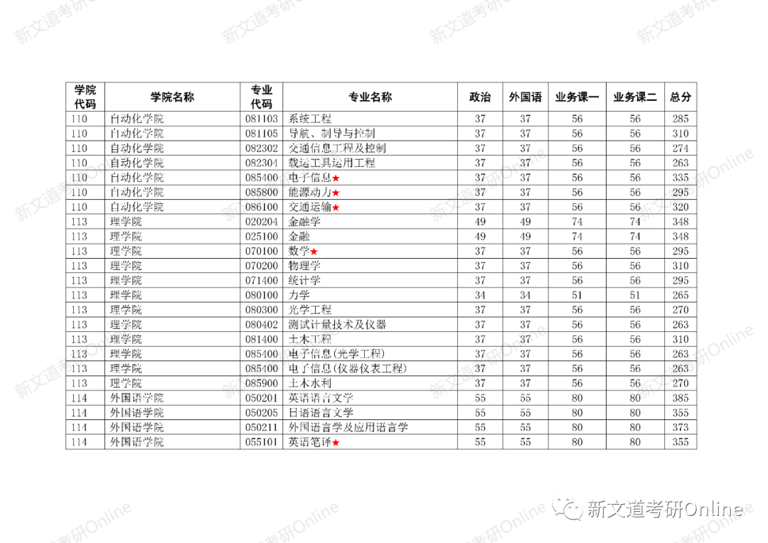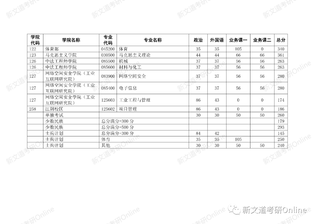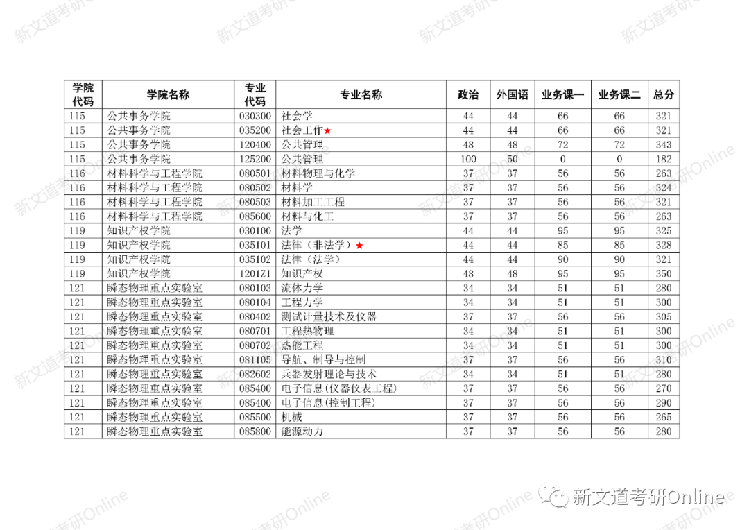 招生專業及復試分數線