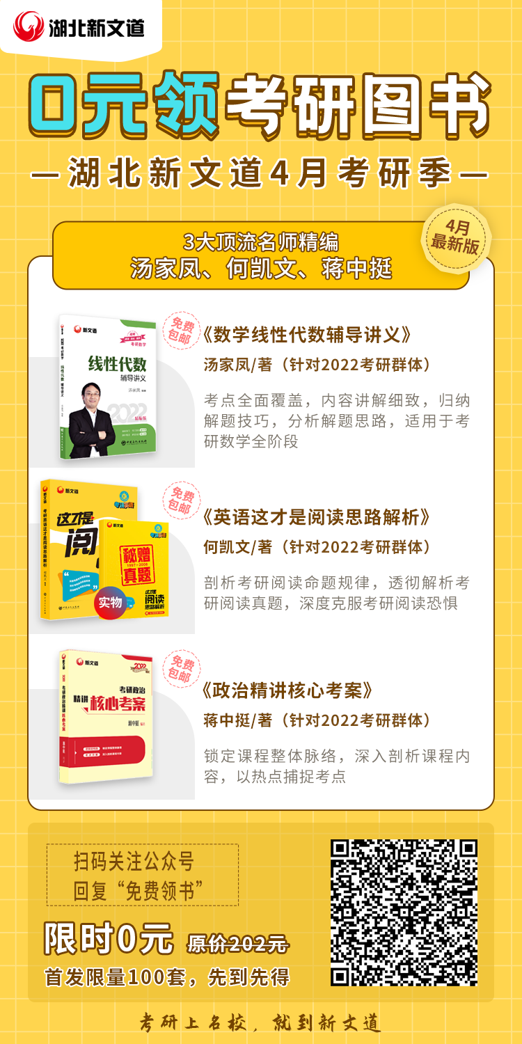 本文素材來(lái)源于網(wǎng)絡(luò),由武漢新文道考研進(jìn)行整理,想了解更多關(guān)于考研相關(guān)資訊,敬請(qǐng)關(guān)注新文道考研,我們將為同學(xué)們奉上全面完整的時(shí)下考研相關(guān)資訊。