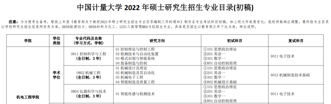5月28日,中國計量大學官網公布了2022年碩士研究生招生專業目錄,明確了初試科目和復試科目,同時也給出了自命題科目考試內容范圍。
