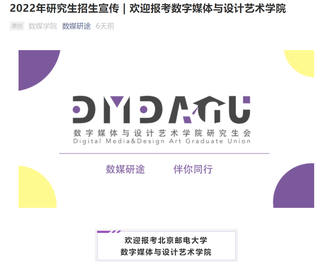 5月20日北京郵電大學在其公眾號發布了2022年研究生招生宣傳,五個專業:新聞傳播學(學碩)、設計學(學碩)、數字媒體與技術(學碩)、新聞與傳播(專碩)。