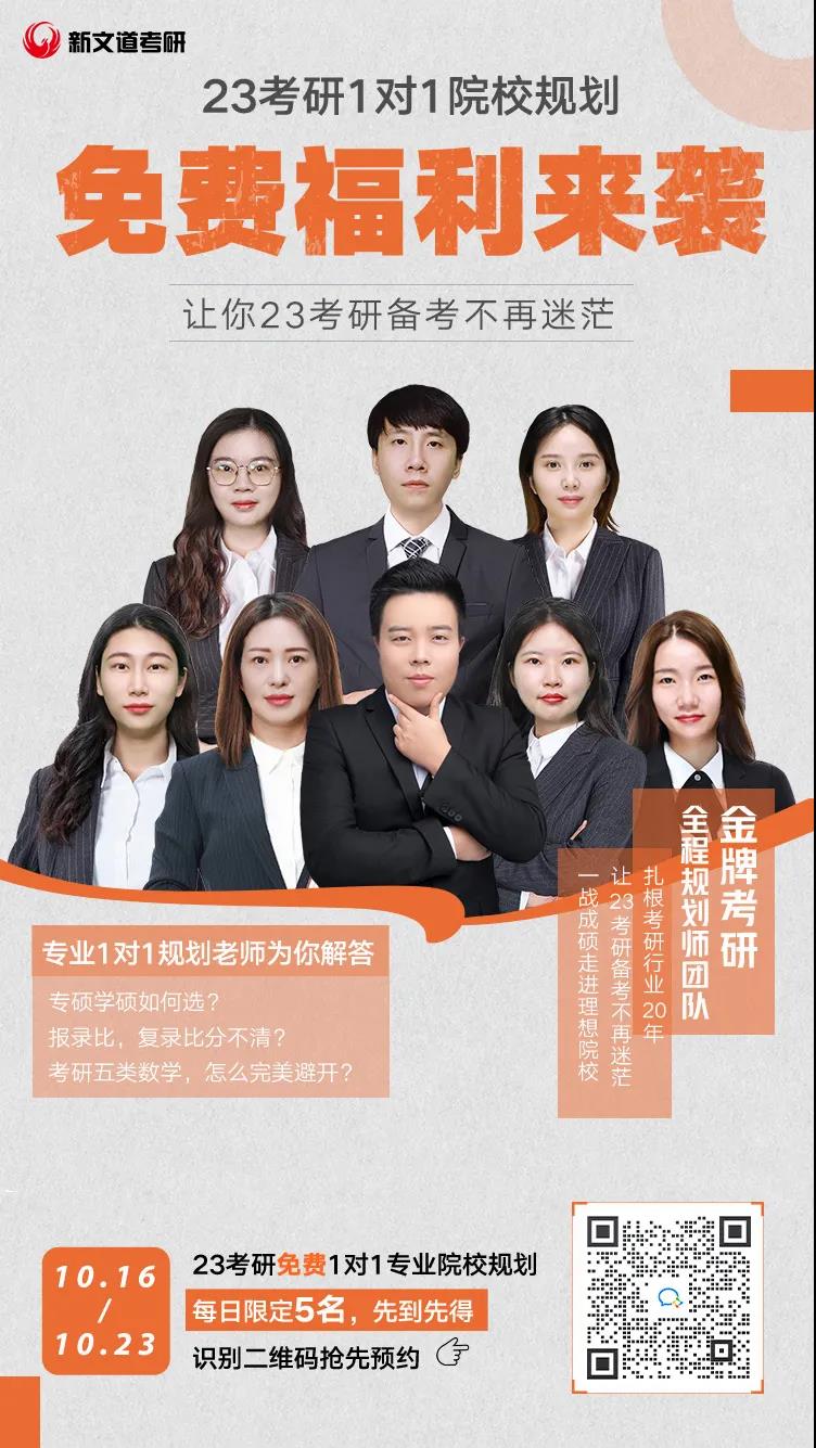 如果大家目前仍然對院校專業選擇有困擾,還沒有確定自己的考研目標,我們有扎根考研行業20年的金牌考研規劃團隊可以幫助到你,現原價199元的23考研規劃1v1服務,限時免費贈送!預約后你將獲得一位專屬老師為你服務!
