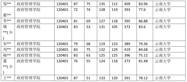 五、2019 年錄取數據 招生數據:120401-公共管理學院-專業:15; 總錄取人數:29,一志愿錄?。? 人,調劑錄?。? 人。 分數匯總: 調劑同學去向:未查到調劑成功同學